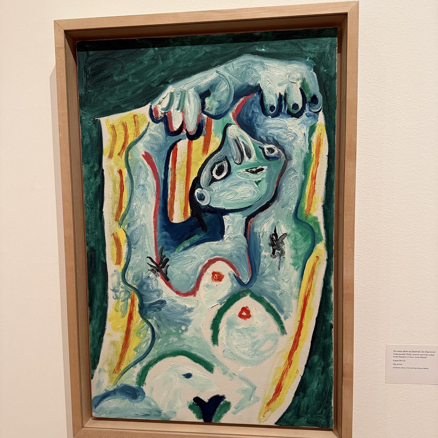 På en liten skylt bredvid tavlan står det att motivet föreställer en naken kvinna.